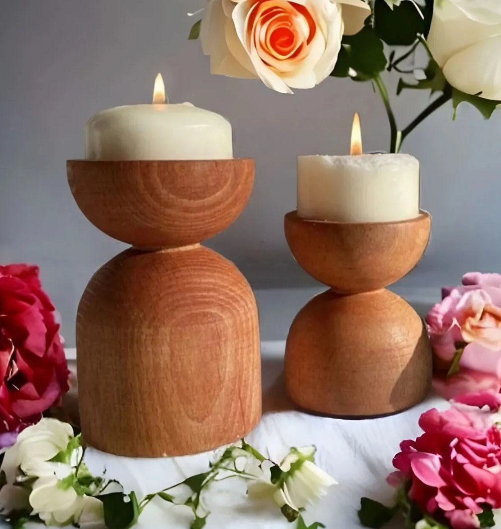 2’li Ahşap Dekoratif Bohem Mumluk Şamdan (Meşe Renk)